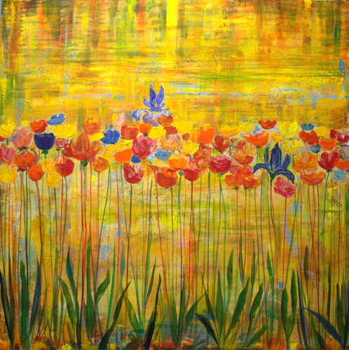 Pour te faire rêver et rendre le temps moins monotone, je t'avais peint un printemps en automne. - 100cm x 100cm - 2025